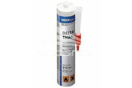 DELTA-THAN - клей для герметичного воздухонепроницаемого соединения любых гидроизоляционных и пароизоляционных плёнок DELTA® с кирпичной кладкой, штукатуркой, металлическими, пластиковыми и деревянными элементами крыши. Наносить клей в виде непрерывного жгута диаметром 8 мм. Допускается использование с элементами из нестроганной древесины. Не следует применять на основаниях из полистрирола. Клей применяется в качестве герметика при устройстве примыканий металлических планок к стенам/трубам при устройстве крыш. Также используется для проклейки отсечной гидроизоляции и профилированных/дренажных мембран.