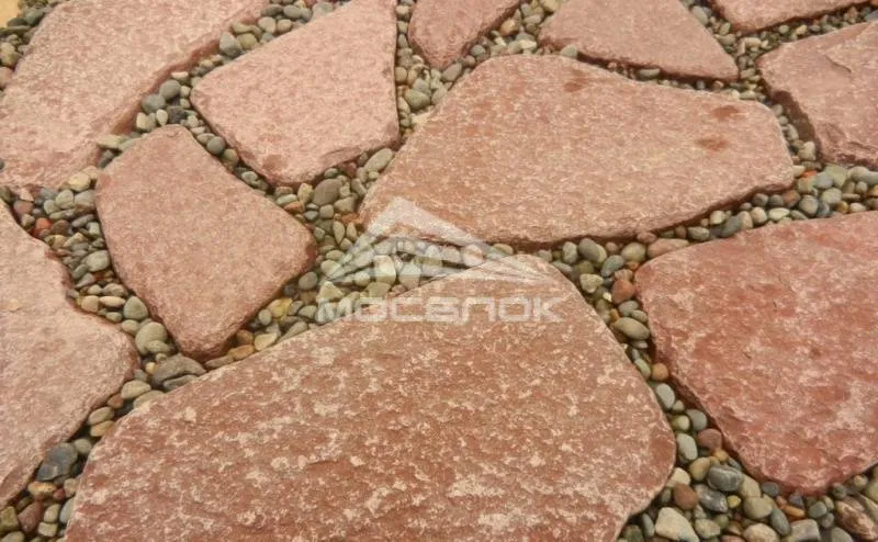 Лемезит галтованный Вишня: цвет вишневый, бордовый с легким белым налетом. Толщина пластин от 18-40 мм, структура плотная, крепкая. Применяется для мощения дорожек, цоколя, декорирования зоны мангала, искусственных озер
