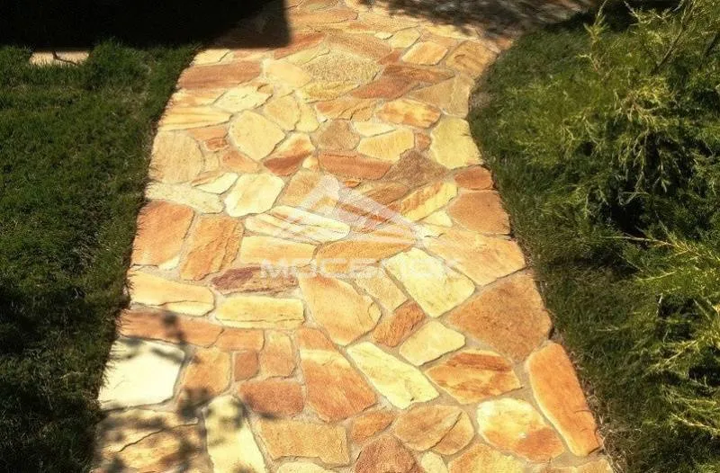 Златолит галтованный буквально создан для ландшафтного дизайна, облицовки фасадов зданий и мощения дорожек. Благодаря своему уникальному искристому цвету и округлой форме. Толщина данного вида природного камня составляет около тридцати миллиметров. Камень плитняк златолит ценится за свою высокую морозоустойчивость он выдерживает низкую температуру, что немаловажно в нашем регионе. Твердость у златолита почти как у гранита, рекордная долговечность (почти 1000 лет). Этот плитняк выдержит такие манипуляции, как: распил, резку, сверление, галтование, колку, шлифовку.