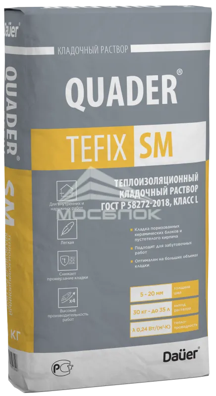 Кладочный раствор теплоизоляционный Dauer QUADER TEFIX SM Класс L 30 кг