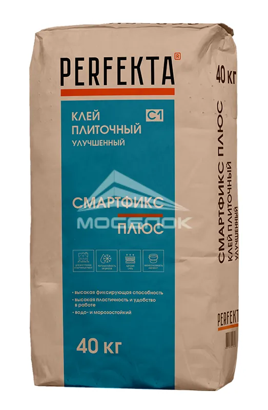 Клей плиточный Perfekta Смартфикс Смартфикс Плюс C1, 40 кг — это надежное решение для различных видов облицовочных работ, объединяющее в себе высокую технологичность, универсальность и проверенную эффективность. Использование качественного клея — залог долговечной, красивой и безопасной отделки, которая прослужит десятилетия. При выборе материалов для укладки плитки важно доверять профессионалам, и продукция Perfekta — один из лучших вариантов для достижения этих целей. Если вы ищете качественный клей для плитки, такой как: Клей плиточный Perfekta Смартфикс Смартфикс Плюс C1, 40 кг, компания "МОСБЛОК" — отличный выбор. У нас вы можете приобрести оригинальный клей Perfekta, который отличается высокой прочностью и надежностью, обеспечивая надежное крепление плитки на любых поверхностях. Благодаря нашим ценам и профессиональному обслуживанию, покупка станет максимально удобной. Закажите Клей плиточный Perfekta Смартфикс Смартфикс Плюс C1, 40 кг в "МОСБЛОК" и будьте уверены в долговечности и качестве вашей отделки!