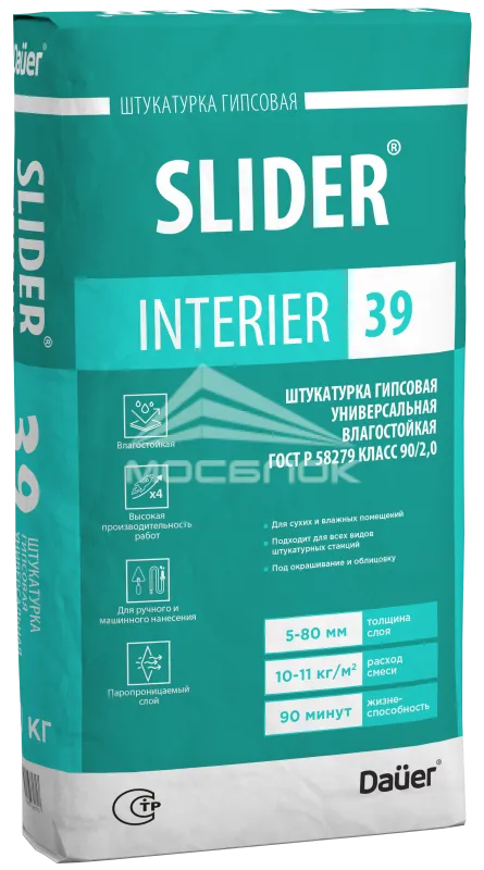 Штукатурка гипсовая универсальная влагостойкая КЛАСС 90/2,0 Dauer SLIDER INTERIER 39 30 кг — это многогранный материал, который сочетает в себе функциональность, эстетическую привлекательность и экологическую безопасность. С учетом текущих тенденций и прогнозов, можно с уверенностью сказать, что её роль в строительной индустрии города Орехово-Зуево будет только возрастающей, открывая новые горизонты для дизайнеров и строителей.