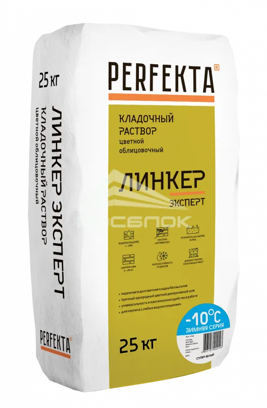 Кладочный раствор Perfekta Линкер Эксперт Зимняя серия супер белый, 25 кг — это фундамент любого кирпичного или каменного сооружения. Правильный подбор состава, пропорций и соблюдение технологий позволяют добиться высокой прочности, долговечности и эстетики зданий. Современные добавки и технологии позволяют оптимизировать расход материалов и повысить эксплуатационные характеристики кладочных смесей производителя Perfekta зима.